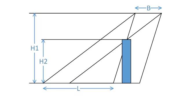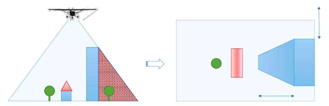 另外,当测区建筑较高的时候,建筑屋顶会在影像中形成较大的投影差,如下图所示,单纯考虑地面物体的重叠度必然导致建筑屋顶出现漏洞,需要结合相对航高、重叠度以及建筑高度等方面的相关因素加以分析。