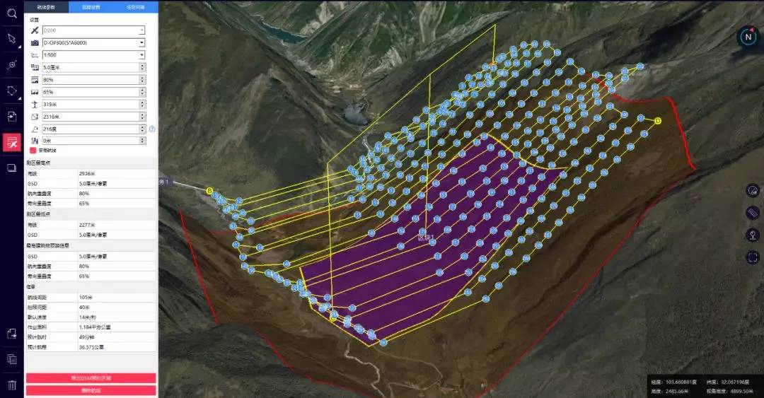 需要强调一点就是:倾斜航线设计一般以下视相机作为航线设计的基准。