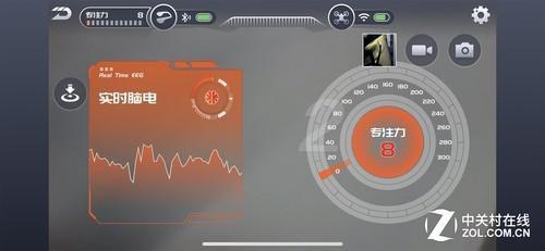 进入意念飞行界面之后,用户就可以开始集中专注力,专注力的数值就是由界面中右侧的仪表盘显示。当专注力达到150数值之后,就会看到UDrone无人机的螺旋桨先会慢速的转一下,然后快速启动飞上天空。专注力越高,飞的就越高,起飞时候的速度也就越快。当你的专注力下降之后,UDrone无人机也会缓缓下降。