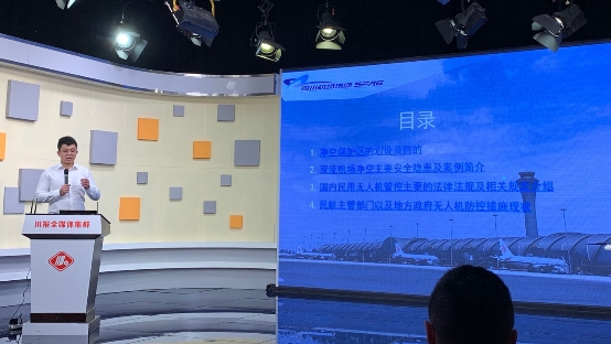 成都双流国际机场股份有限公司、成都市公安局、中国民航局第二研究所、西部战区空军等单位负责人,分别对双流机场净空安全隐患及案例、无人机管控主要法律法规、无人机交通管理系统(UTMISS)、无人机空域申报流程等方面,为航拍爱好者、影视制作机构、从业飞手等相关人员宣讲了有关知识。