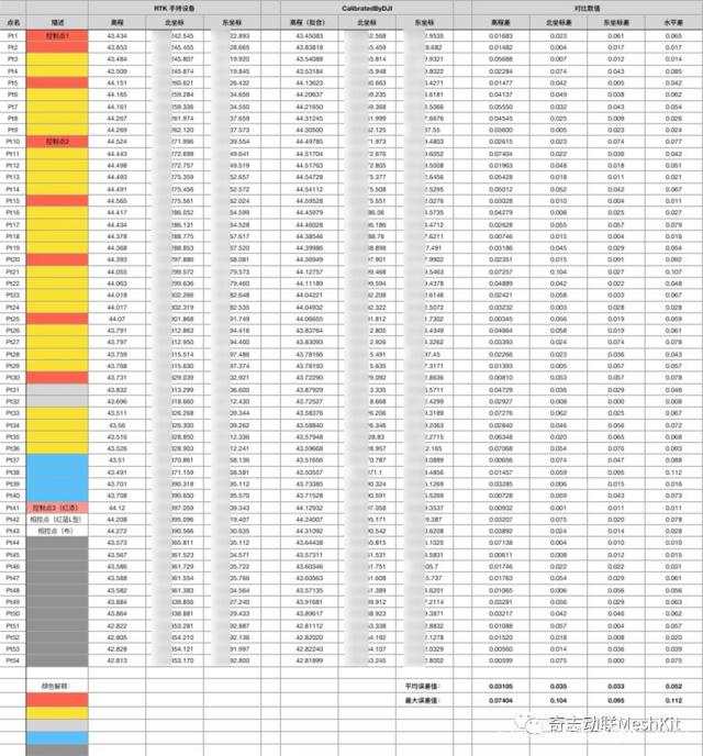 将获得的54个点坐标数据与实际手持RTK采集数据进行对比,本次测试结果如下: