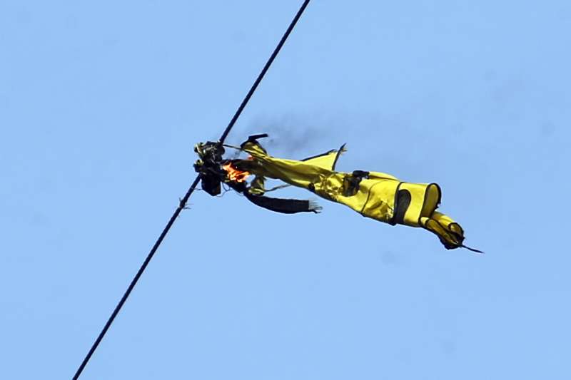 现场天色已暗,在做好安全措施和一番调试后,电力人员将激光炮瞄准异物,一道绿光在夜间显得格外明显。随后,电力人员按下了发射激光的按钮,仅仅10秒钟,薄膜就冒起了白烟,一分钟左右,这个缠绕在线路上的隐患,就已全部烧尽。整个过程从选择场地、架设激光炮、瞄准异物、启动电源键,到最终清除,只花了10分钟。