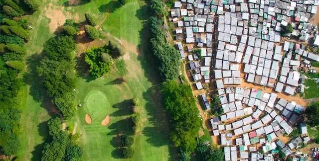 (南非德班,高尔夫球场与隔壁的贫民区)