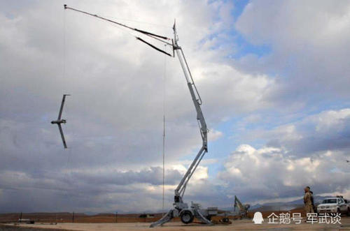 “扫描鹰”无人机采用的是弹射架弹射起飞,使用起来比较方便。不过“扫描鹰”无人机的回收方式比较特别,是用“天钩”系统进行回收的。“天钩”系统也就是一个16米长的杆子,杆子上有绳索,“扫描鹰”无人机通过撞击绳索的方式进行回收,还算比较有意思。