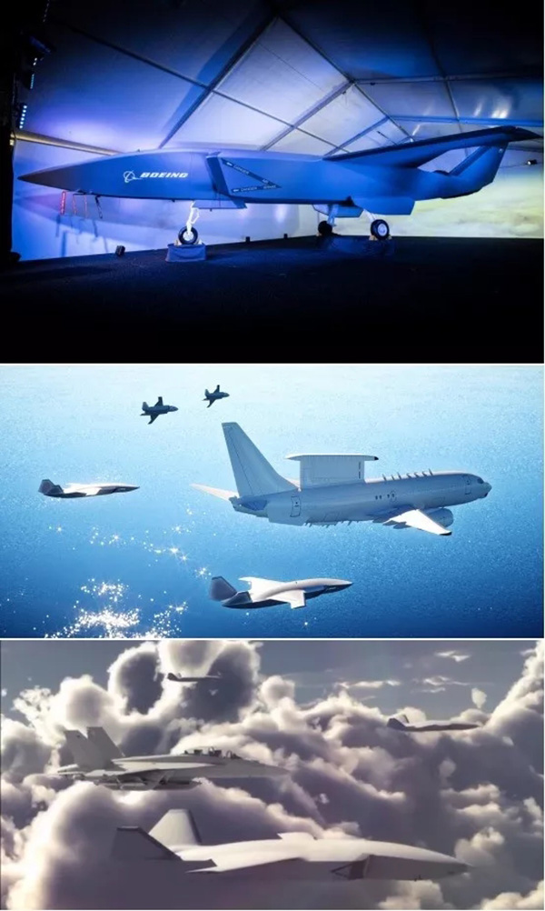 波音公司在澳大利亚展示的“空中力量编组系统”无人机模型及相关视频截图