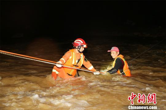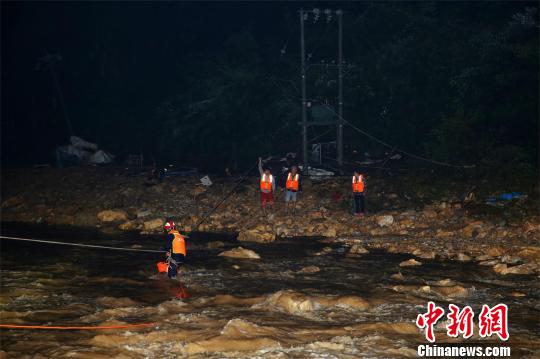 消防队员横渡过河展开救援 蒋锋 摄