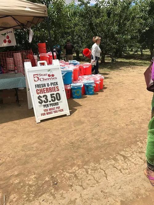 简单举个例子,小探最近摘樱桃去了,市面普遍超市售卖的樱桃5—8美元/磅,但如果你去樱桃园里摘的话,只需要3.5—4美元/磅。因为,农场主不需要再担心请大量的劳力去进行采摘、分拣、包装了。
