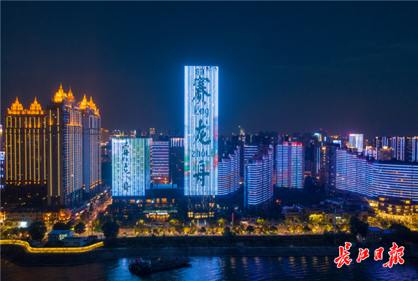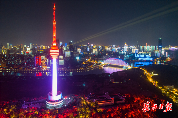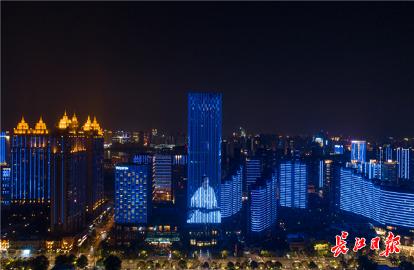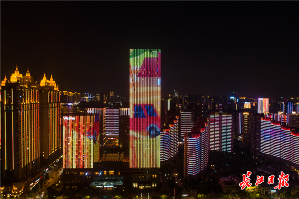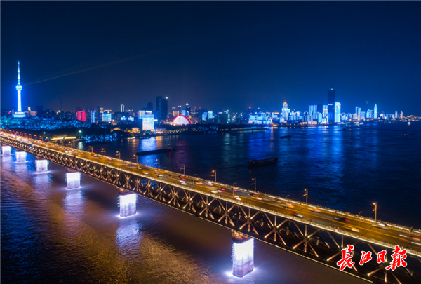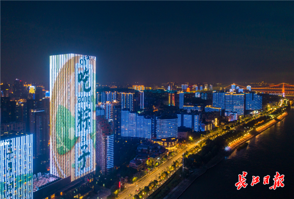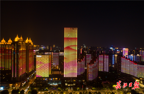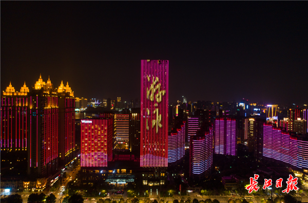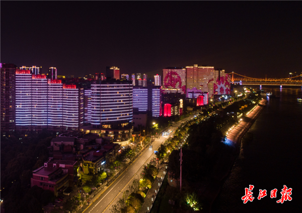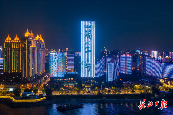 6月7日晚,武汉夜景璀璨,长江两岸上演灯光秀庆祝端午佳节。记者胡九思 航拍