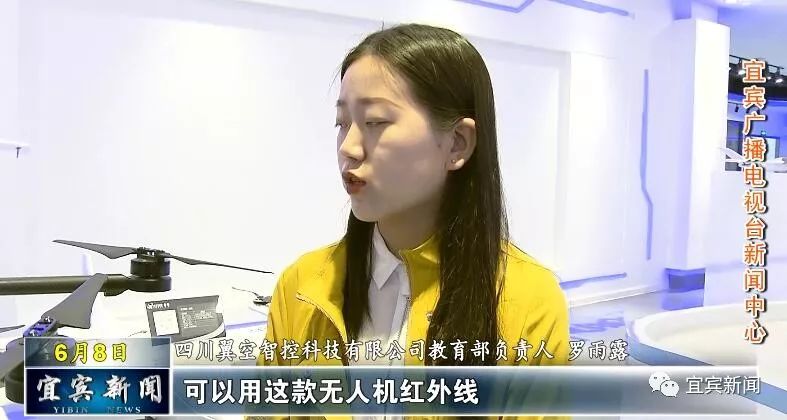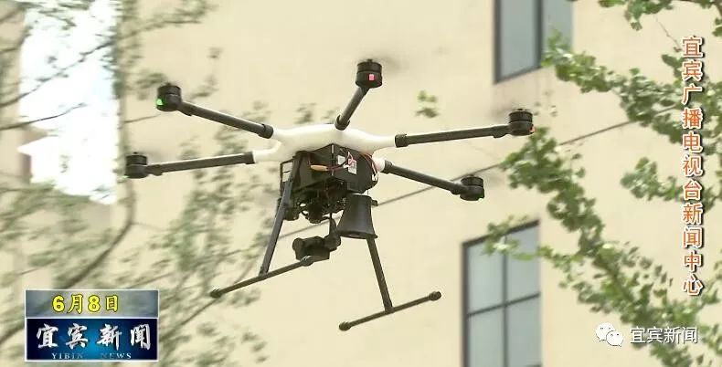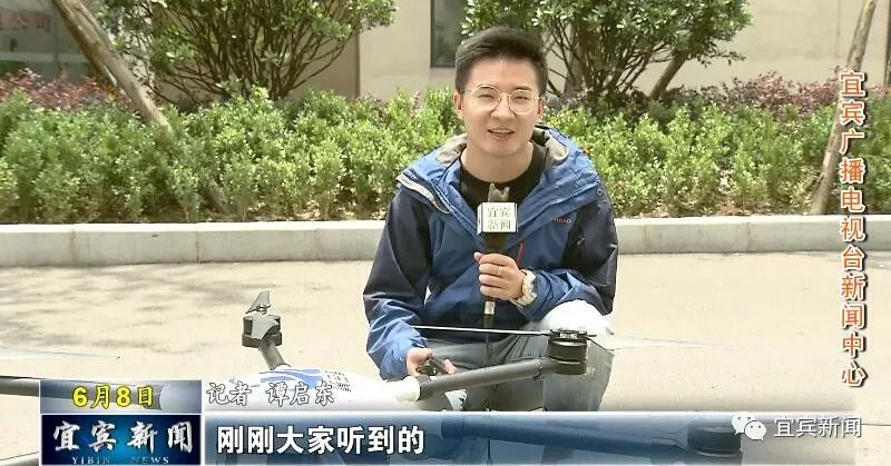 记者 谭启东:刚刚大家听到的我们《宜宾新闻》栏目每天的开场白,就是通过我手中的对讲机和身旁的无人机,联动实现的。它是通过无人机下面搭载的扩音器,实现声音的实时传输公放功能,这也是四川翼空智控科技有限公司,自主研发的一款无人机产品。