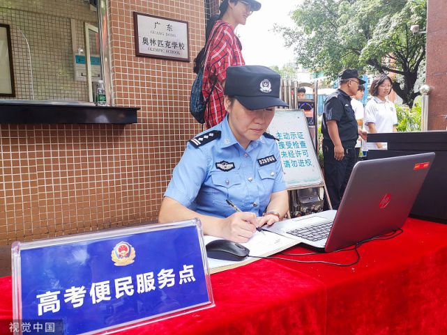 广州,华师附中考点,天河警方开设便民服务点,考生如果丢失准考证,提供身份证号码即可办理准考证证明,全程不到1分钟。