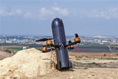 “无人机子弹”,也可称“子弹无人机”,本质上是一枚微型导弹和四轴飞行器混合体,起飞重量910克,射程4公里。锁定目标后,它能迅速升空并向目标飞去,速度最高可达350公里/小时。与普通导弹不同,这款装置没有搭载战斗部,而采用实心弹体,通过猛烈撞击的方式将目标无人机撞坏。