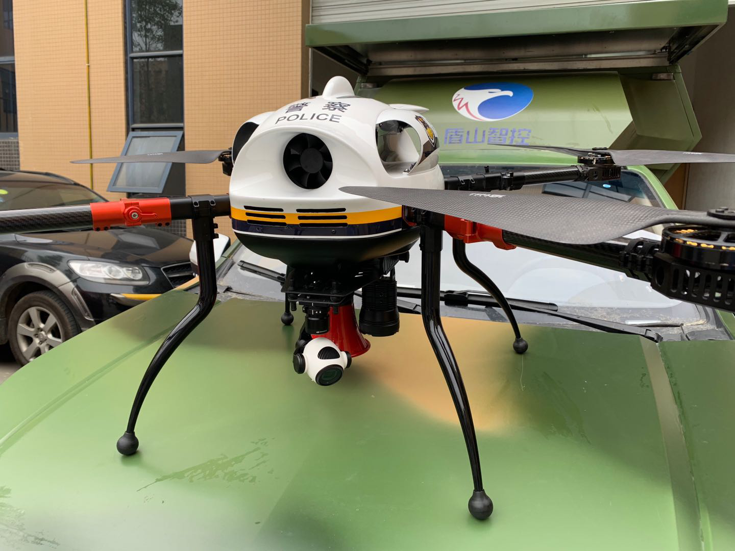 (第四代盾山智控车配套集喊话器、探照灯、摄像头于一身的灵动鹰无人机用于应急领域)