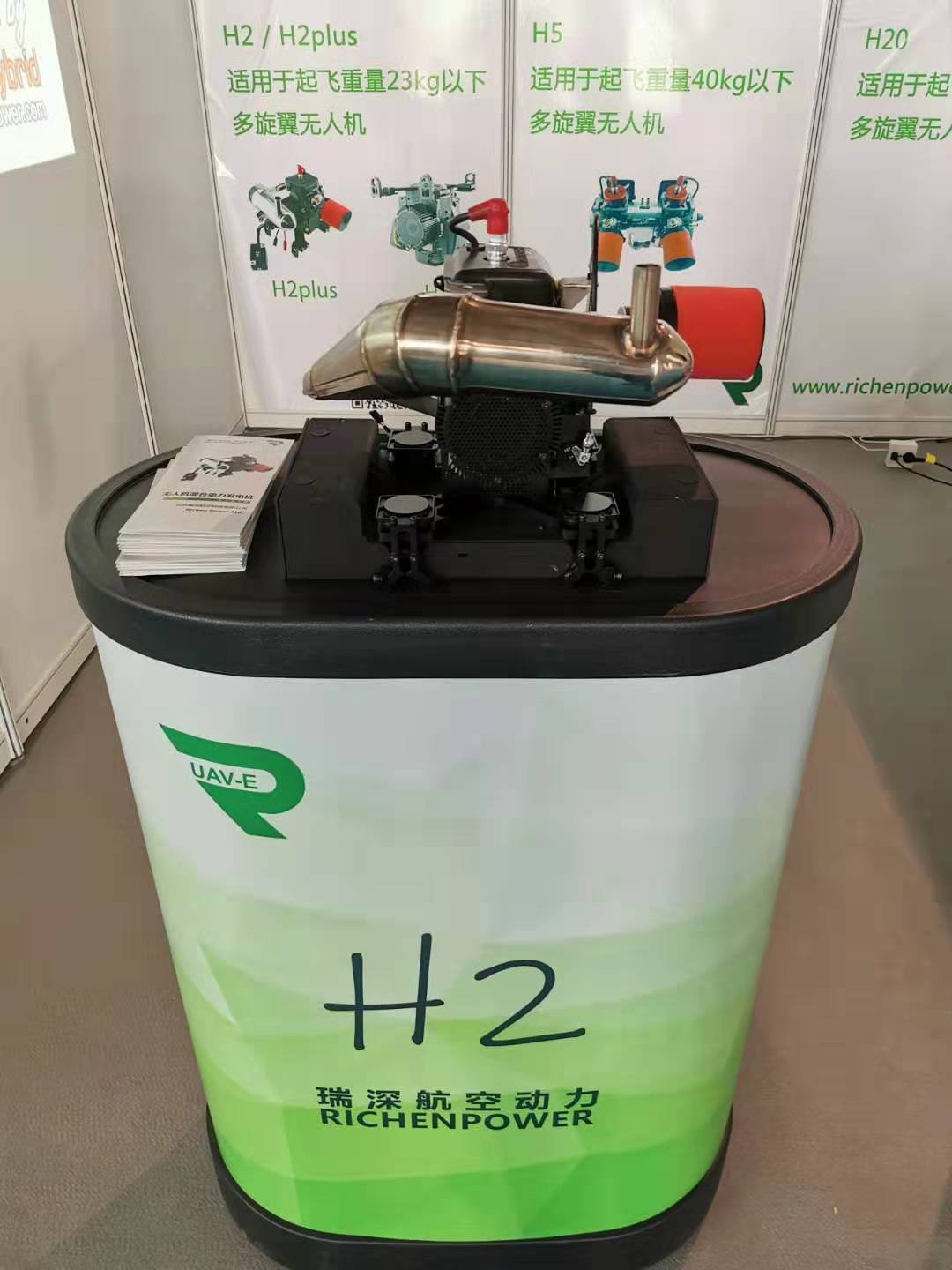 北京瑞深航空科技有限公司(以下简称:瑞深航空)是一家专注于无人机动力研发与生产的企业,瑞深航空主要科研生产方向为“适应多燃料无人机航空发动机”和“适用电动多旋翼无人机的轻质油电混合动力系统”。此次也是携H2、H5两款油电混合发动机亮相本次展会,下面我们一一介绍下这两款发动机的情况。