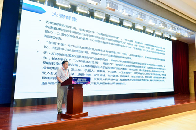 榆林天则无人系统创新研究院院长袁建平介绍了2019年“创客中国”无人机中小企业创新创业大赛的赛事安排和参赛要求。袁建平指出,这次大赛不仅是无人机技术、产品和服务的竞争和优选,更是无人机在国民经济各个行业应用的创新项目交流和推广。依托大赛,推动无人机行业应用场景的开发,以及优秀项目的落地实施和产业化,更大范围、更深层次地推动产业生态建设和体系化发展。