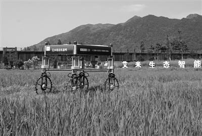 另外,若需进一步体察稻苗情况,还可开动田间机器人巡田。记者在现场看到,田间机器人的特点是其具有四个细轮子。如此一来,田间机器人可在稻田中自由穿梭,其搭载的摄像头可更近距离为稻苗拍照。