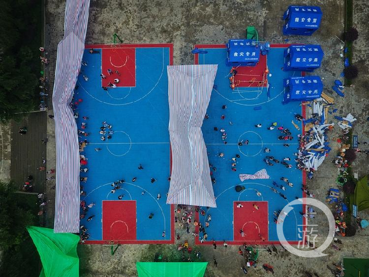 6月18日早,四川长宁县硐底镇,上游无人机空中打探硐底镇震区中心学校成临时集中安置点,各项救援工作有序展开&...