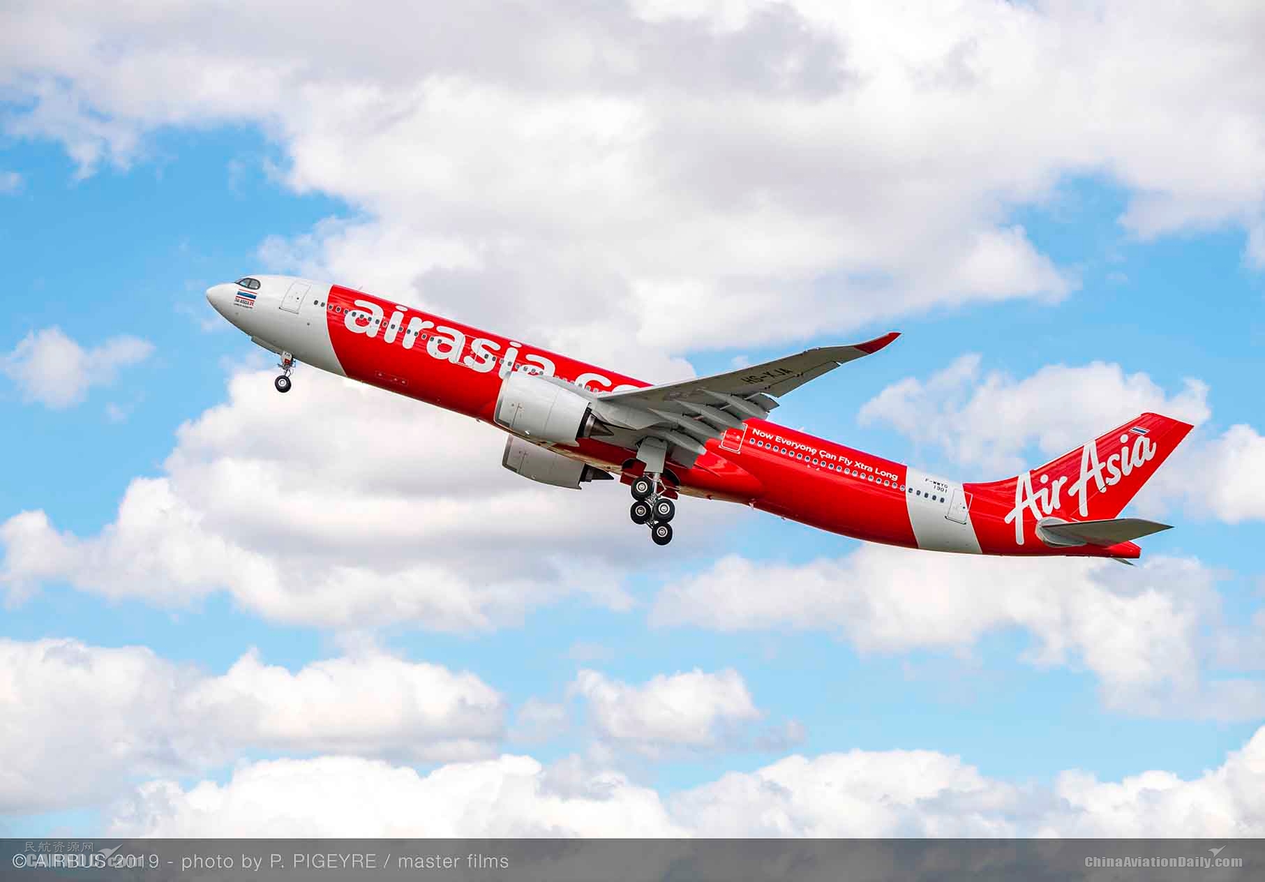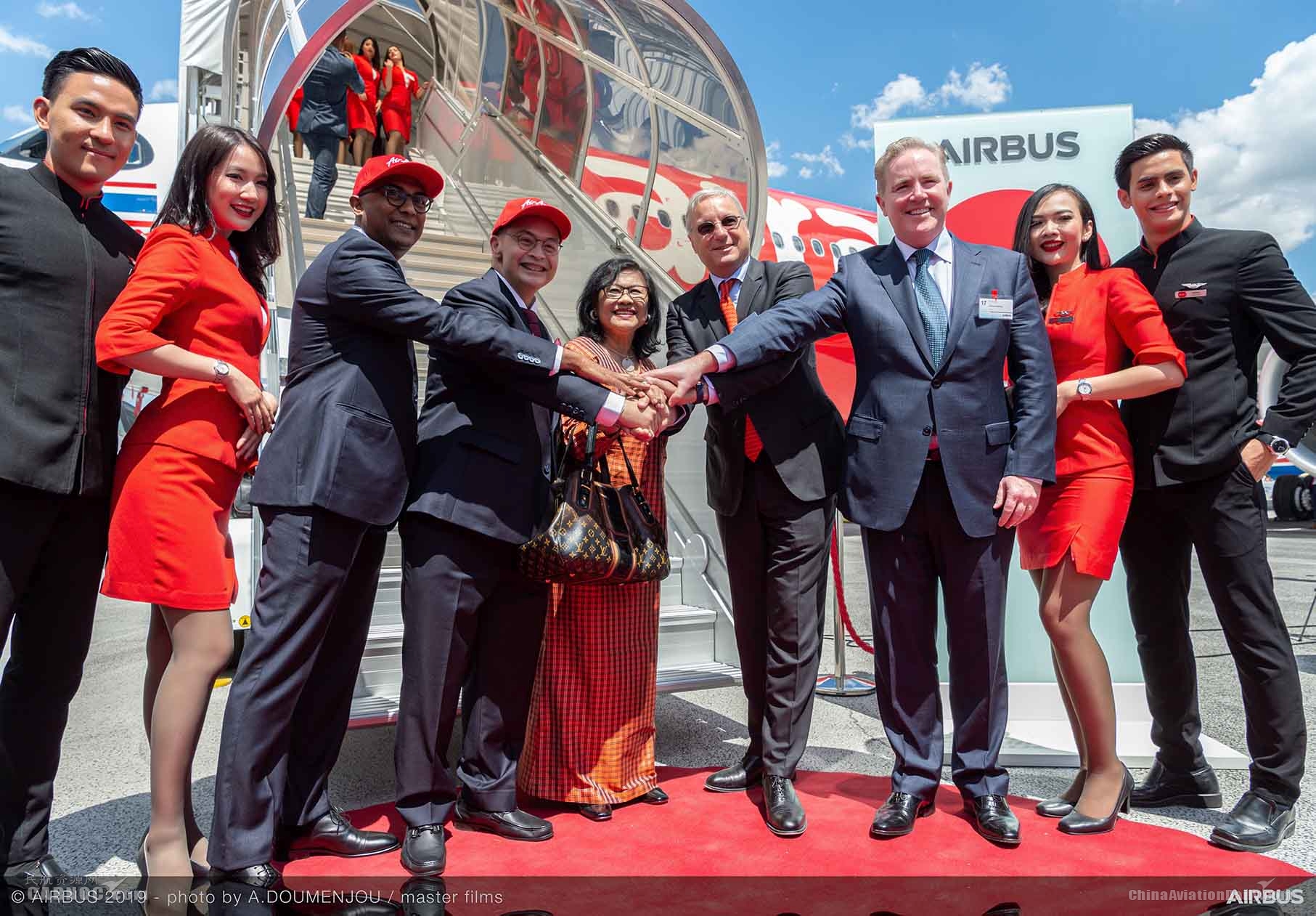 民航资源网2019年6月18日消息:空中客车与亚洲航空(AirAsia,以下简称亚航)在巴黎航展现场共同揭幕了亚航集团首架空客A330neo飞机。该架飞机将于未来几周内经Avolon租赁公司交付亚航集团旗下的远程航空公司泰国亚航X运营。马来西亚亚航X主席Tan Sri Rafidah Aziz、亚航X集团首席执行官Nadda Buranasiri、空中客车首席商务官克里斯蒂安·谢勒、Avolon租赁公司首席执行官Domhnal Slattery和罗尔斯-罗伊斯民用航空总裁Chris Cholerton共同出席了揭幕仪式。