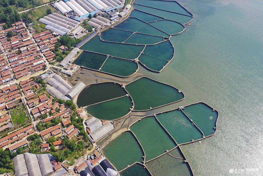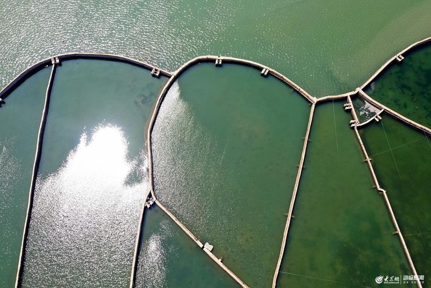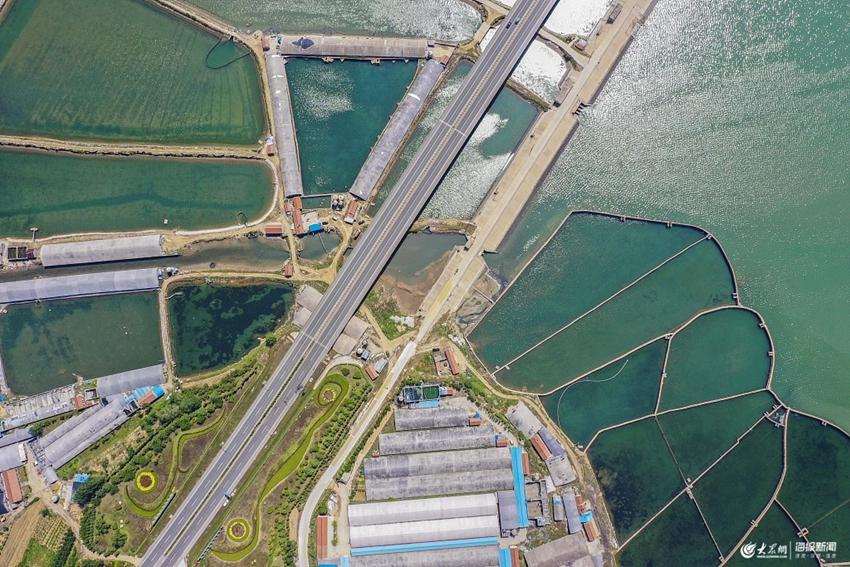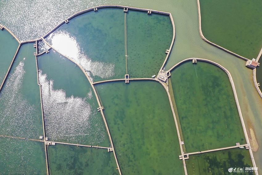 航拍青岛陈家贡湾美景 养殖池成“蓝绿宝石”