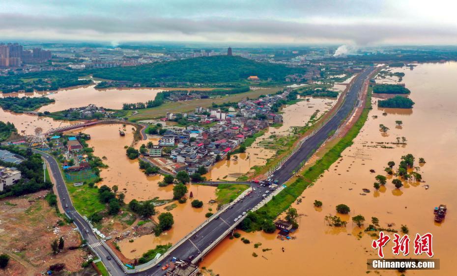 6月10日,无人机航拍江西省吉安市城区以及吉水县、泰和县等地的洪涝灾害画面,道路中断、房屋受淹。6月6日14时以来,江西普降大到暴雨,局部大暴雨到特大暴雨。截至6月10日17时30分,洪涝灾害造成江西省181.9万人受灾,直接经济损失33.8亿元。图为航拍江西省吉安市吉州区曲濑镇高沙村受淹画面。吴建华 摄
