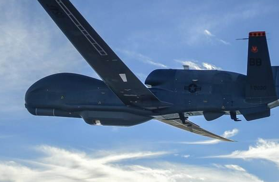 伊朗官方提到的“全球鹰”无人侦察机。路透社说,据该无人机制造商美国诺斯罗普•格鲁曼公司在其网站上介绍,RQ-4“全球鹰”无人机系统(UAS)可以在高空飞行30多个小时,在各种天气条件下搜集大面积近实时、高分辨率图像。