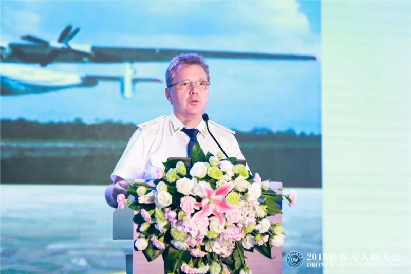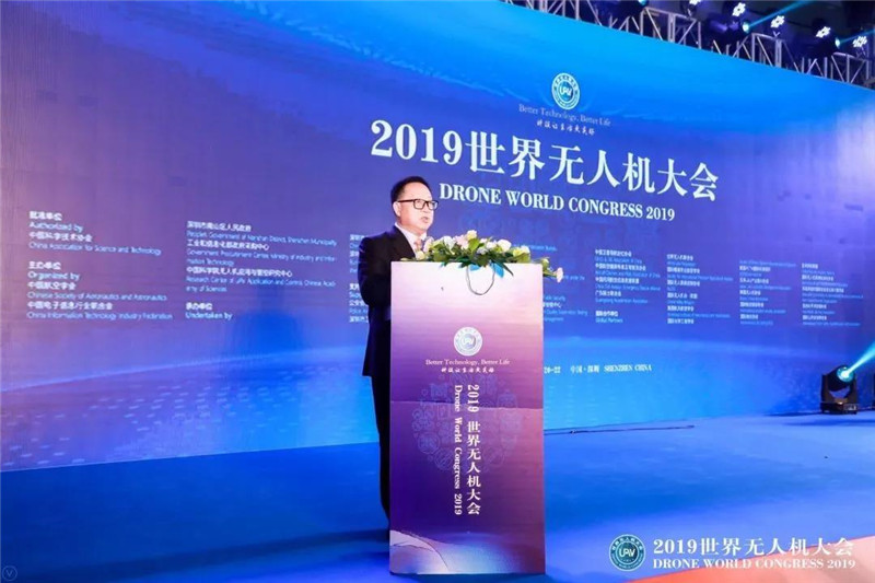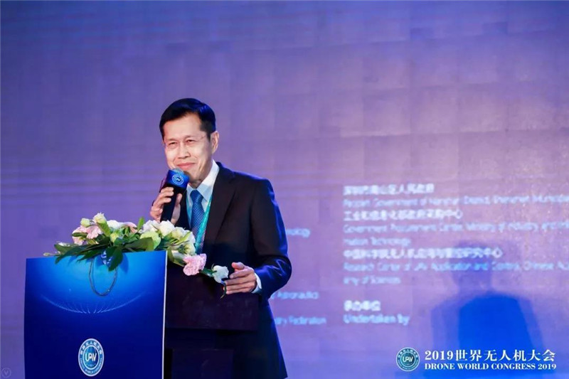 2019世界无人机大会组委会秘书长、世界无人机联合会主席、深圳市无人机行业协会会长杨金才在晚宴上致辞