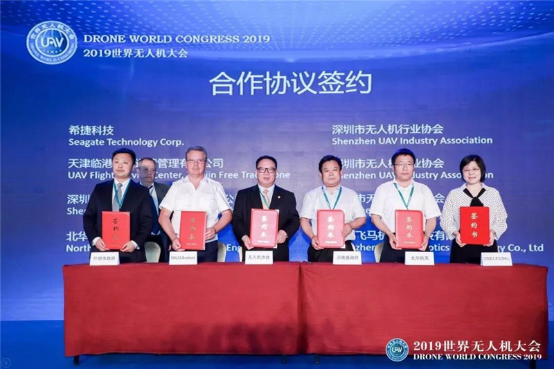 晚上7时,2019世界无人机大会—全球无人机盛典及欢迎晚宴在深圳洲际酒店举行。晚宴共分为四个环节,分别是全球无人机贡献颁奖;全球无人机创新创业大赛启动仪式;签订合作协议;以及中国机械设备成套工程协会无人系统分会揭牌仪式。