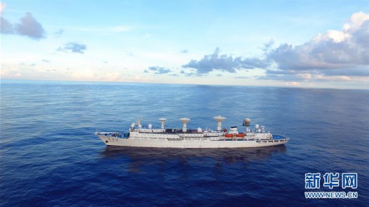 6月21日,远望3号船在南太平洋测控任务海域(无人机拍摄)。 新华社记者 刘诗平 摄
