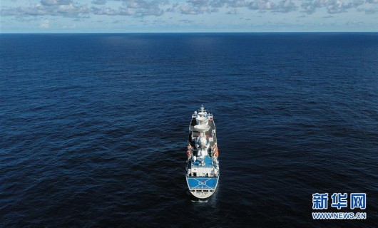 6月20日,远望3号船抵达南太平洋测控任务海域(无人机拍摄)。新华社记者 李雨泽 摄