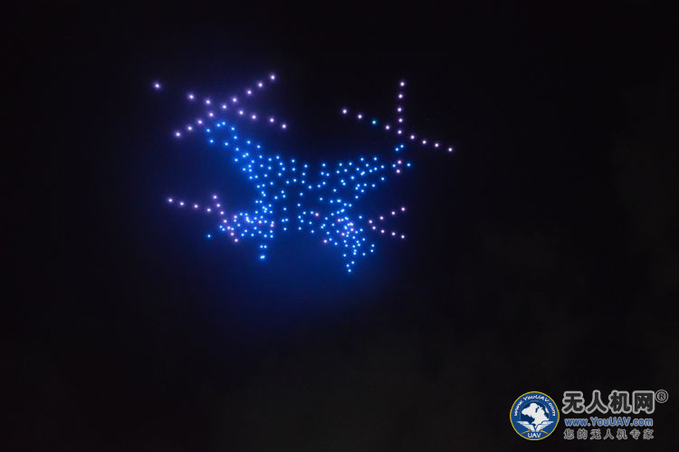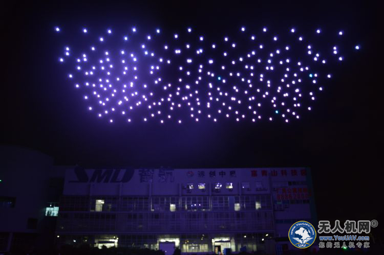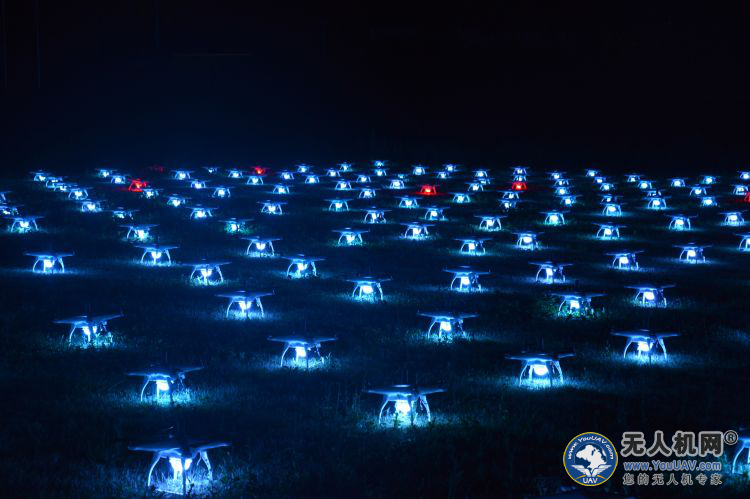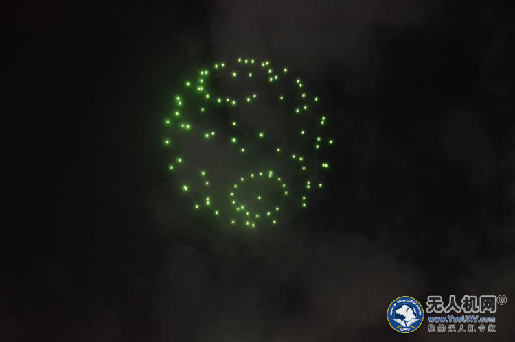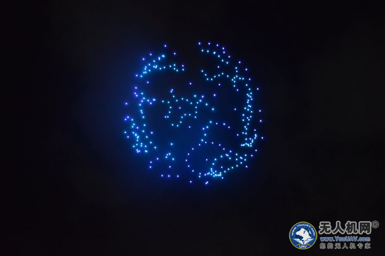 飞行表演正式开始,300架无人机开始升空