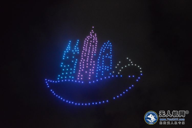 无人机表演飞行第一个图案便是深圳的简图
