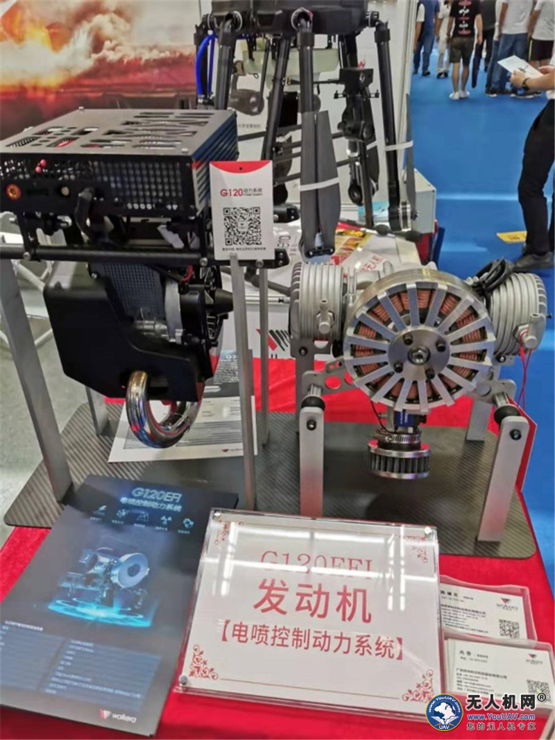 无人机网(www.youuav.com)6月23日报道:6月20-22日,2019第四届深圳国际无人机展览会暨2019世界无人机大会在深圳会展中心盛大举办。华科尔携2.4kw风冷电喷发动机、7.4kw水冷电喷油电混合发动机、及消防无人机、油电混合植保机以及24公斤级油电混合无人机亮相。