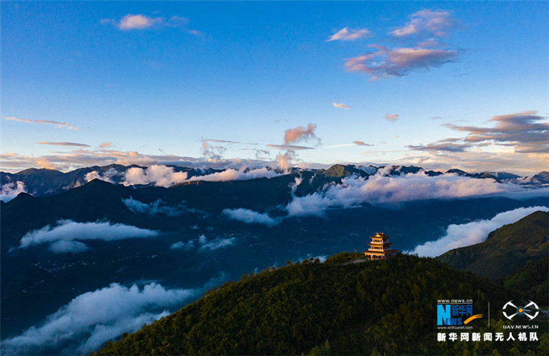 近段时间,重庆多地迎雨。位于三峡库区巫溪县的云台寺,雨后空气格外通透,天蓝云白,水绿山青,呈现出三峡腹地良好生态,尽显山城夏日风情。新华网发(王强 摄)