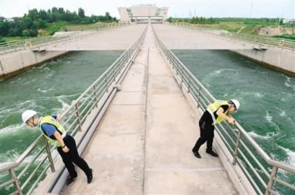 2018年8月14日,南水北调中线干线荥阳管理处工作人员在南水北调索河渡槽附近巡查渠道安全。 新华社记者 鲁 鹏摄