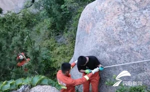 6月25日下午15时许,位于威海荣成市人和镇槎山风景区西侧山峰,一男子爬山被困山中,情况十分危急。接到求助信息,辖区石岛消防中队赶赴现场救援。
