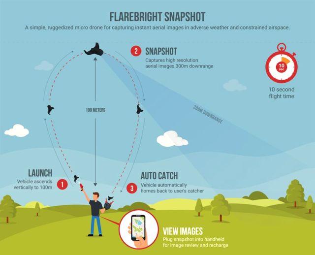 微型无人机 SnapShot 翼展只有 12 厘米,重量仅 85 克,用家可使用手持发射器,把无人机依照抛物线路径上升至最高约 100 米,以拍摄最远 300 米以外的影像,然后使用专门软件控制滑行下降路径,并透过 USB 连接手机直接查看图像。因其动力系统非常小,虽然 20 秒就能以 USB 充满电,但总飞行时间只有 10 秒,实际能拍摄的东西非常有限。