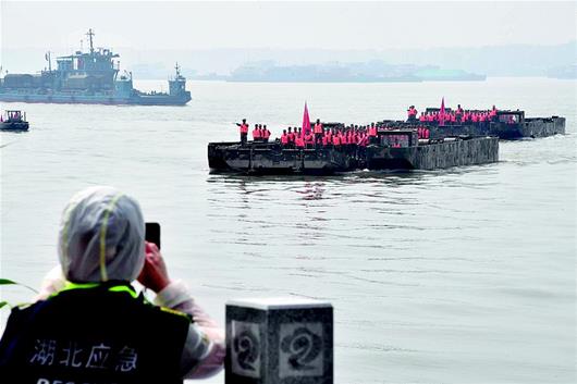 驻鄂舟桥部队演练使用大型舟桥运送人员