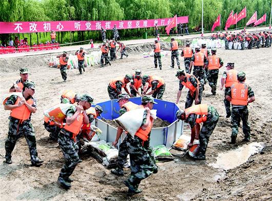 6月14日,2019年湖北省防汛综合演练在主会场黄冈拉开帷幕,中国安能集团第七分公司采用钢木土石组合封堵和大型机械抛填块石封堵模拟的决口