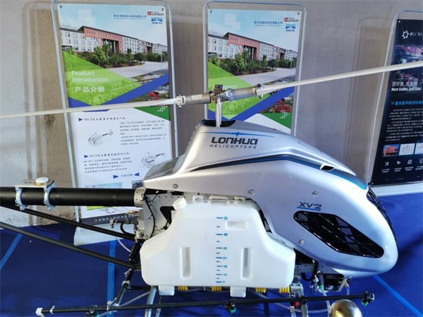 隆华XV-2型植保机最大起飞重量可达到230kg,最大载药量可以近60L,也是目前全球载药量最大的一款植保机之一。这款飞机不仅动力十足而且负载能力强,每小时有效作业面积可达200亩,并且可以通过自主航线设定进行超视距飞行。据了解,该款植保机已经先后在哈尔滨、内蒙古、新疆等地开展了针对水稻、土豆、花生、棉花等不同大田作物的多品种、小规模的正式植保作业,累计运行时间已超过上千小时,各方面性能均表现良好。