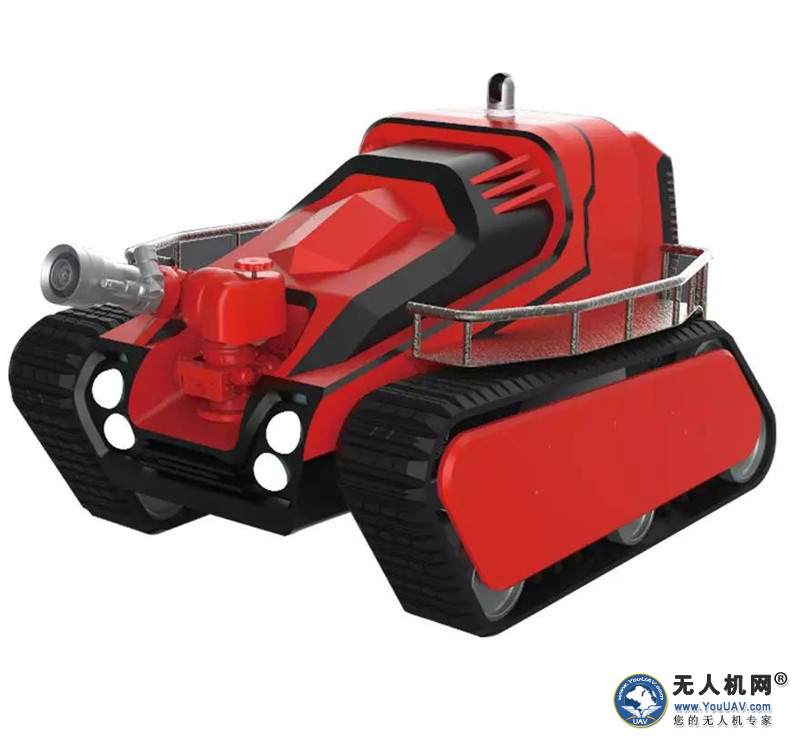 拿公司最新研发的RXR-M120D消防灭火机器人来说,RXR-M120D对标美国最新机器人,拥有标配四路DN80水管,整体机重1000kg,高度1500mm,以及30KW进口发动机,同时配有2吨进口电动绞盘、汽车前大灯、可配PLKD80-120水炮。