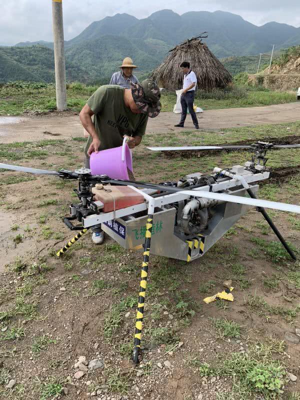 霍保民说,今年他们计划在辉县、济源、栾川、汝阳等地开展无人机飞播作业3-5万亩。目前采用的双旋翼油动型无人机,在国内处于领先地位,载种量在100-150斤之间,相当于普通小型无人机的10倍以上。