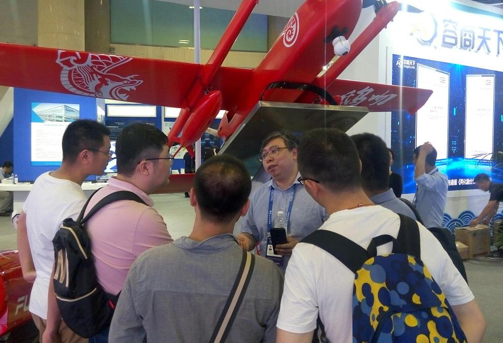 位于软件赋能转型展区的容商天下鸱吻无人机及其天域飞控系统,一经亮相便备受关注,成为此次软博会上一大亮点,引来全场围观。