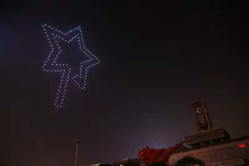 6月 28 日晚上 8 点 38 分,石家庄的夜空异常闪亮。石家庄解放广场上空 150 架无人机同步升空,随着音乐一起变幻起舞,让石家庄的市民们欣赏了一场别开生面的 " 饕餮盛宴 "。这是 2019 中国 · 石家庄第十四届国际动漫博览交易会在运用无人机,绽放科技与光影的魅力,让人们感受到智慧科技带来的多彩生活。这次的无人机编队表演,是石家庄第十四届动博会重点系列活动之一,也是石家庄主城区迄今首次无人机编队表演。