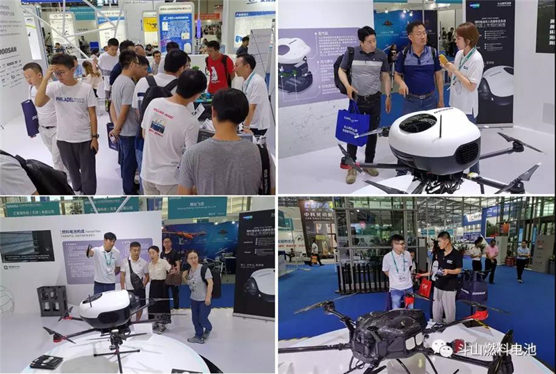 本次斗山摩拜创新共展出4款燃料电池无人机,产品集长续航,大负载,高防护于一身,可广泛应用于野外、消防、测绘等领域。除此之外,斗山摩拜创新还为观众展示并讲解了自己的燃料电池模块、气瓶及阀门的工作原理。