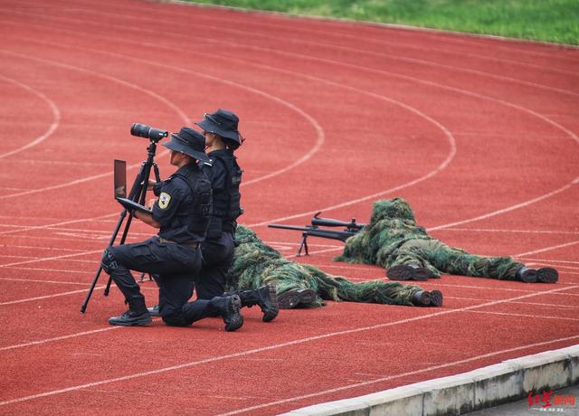 ↑演练现场,特警狙击手观察“犯罪分子”一举一动