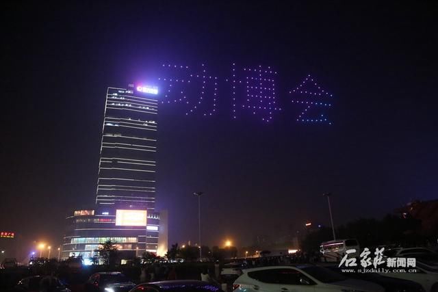 6月28日,由150架无人机组成的编队同时起飞,在石家庄解放广场的夜空上组成不同的文字图形,吸引众多市民前来参观。本次飞行是第十四届动博会的重点系列活动之一,也是石家庄主城区首次无人机编队表演,当无人机组成“石家庄”三个字时,现场市民用手机记录下这精彩的瞬间。