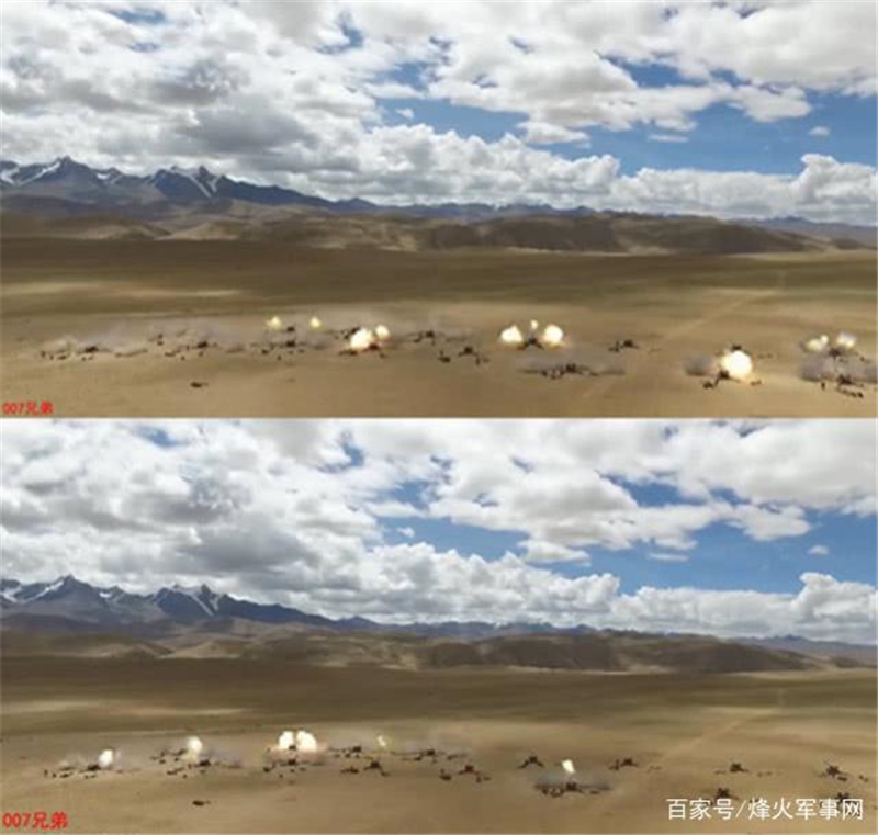 十多门火炮一轮齐射后,远处目标区域被炮火覆盖,可以看到弹着点比较密集,精度尚可。66式加榴炮最大射程才17公里多,一般也就打十公里左右;新型155超轻加榴炮射程可达40公里,火箭增程弹甚至达60公里,还拥有多种精确制导炮弹。但最重要的不是装备本身,而是背后侦察、指挥、通信、校射等整个作战体系。在我军快速火力支援体系逐步完成的情况下,老式装备也能发挥出比以前多好几倍的作用。