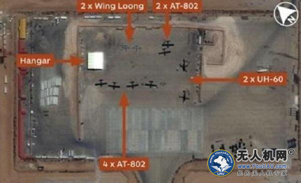 al-Khadim空军基地是翼龙无人机在利比亚大本营,图中可以看到2架翼龙无人机