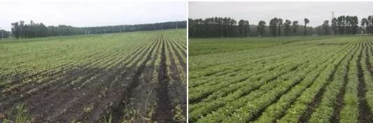 右图是无人机喷洒过金丰三宝的大豆示范田