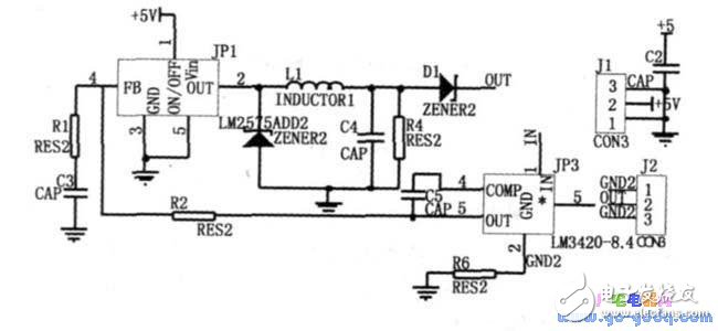 当电池电压达到8.4V 后, LM3420 开始控制LM2575ADJ 的反馈脚。LM3420 使充电器转入到恒压充电过程, 电池两端电压稳定在8?? 4V.R6 、R7 和C3 组成补偿网络, 保证充电器在恒流/ 恒压状态下稳定工作。若输入电源电压中断,二极管D2 和运放LM358 中的PNP输入级反向偏置, 从而使电池和充电电路隔离, 保证电池不会通过充电电路放电。当充电转入恒压充电状态时, 二极管D3 反向偏置, 因此运放中不会产生灌电流。