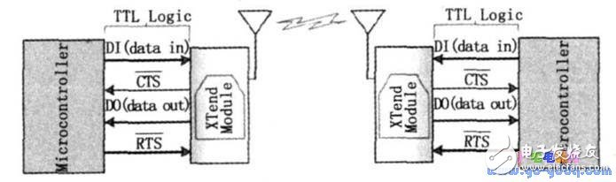 由此可知, XT end OEM 无线射频模块在低成本无线数据通讯解决方案中提供了最远的距离。该模块易于使用, 耗电低, 对设备间重要数据包提供了可靠的数据传送, 体积紧凑节省宝贵的电路板空间。图7 表示的是由XTend OEM 无线射频模块构成的主机间无线连接的系统框图。